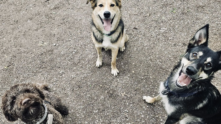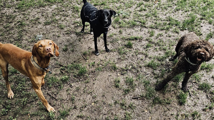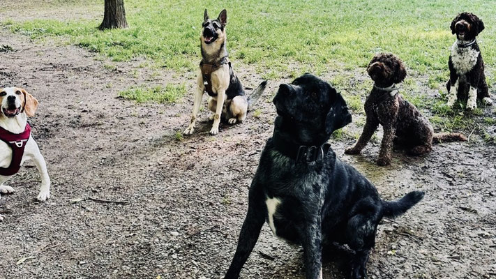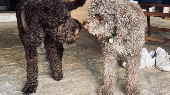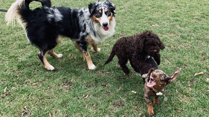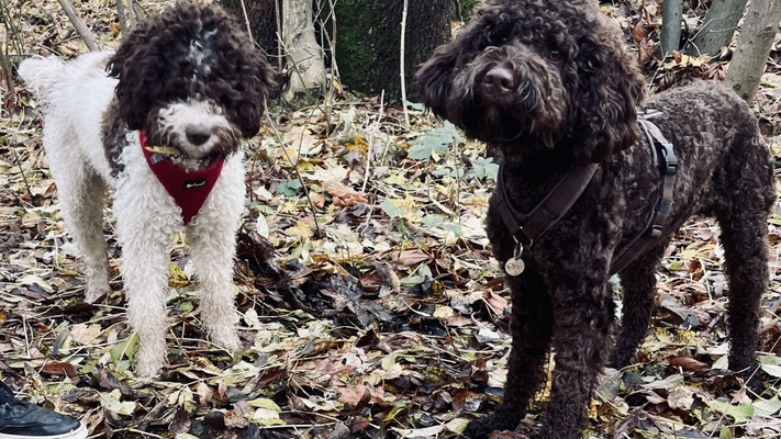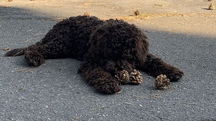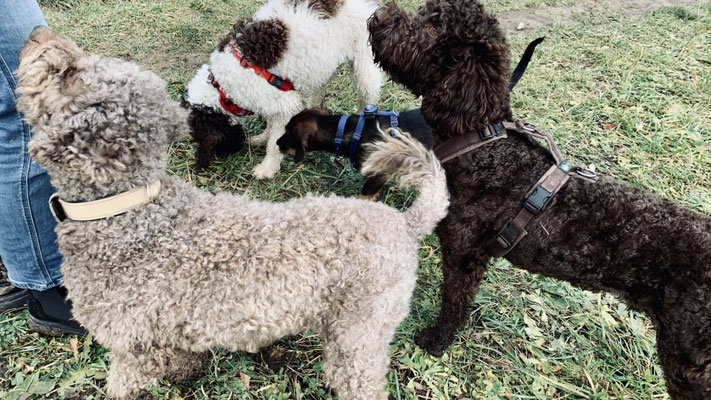 Als Draufgänger und Junghund liebt Dino das Spiel - mit Kindern, Bällen sowie seinen Hundefreunden und Geschwistern. Gerne mit ähnlich großen gelockten Hunden, Lagottos oder seinen Geschwistern. Unerschrocken wie er ist, zählen aber auch Huskies, Kaukasische Hirtenhunden und Leonberger zu seinen großen Freunden.